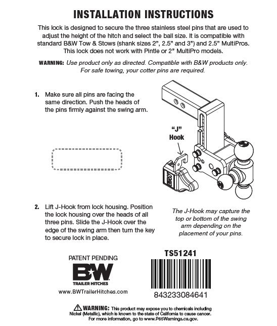B&W TS51241 Tow & Stow Pin Lock